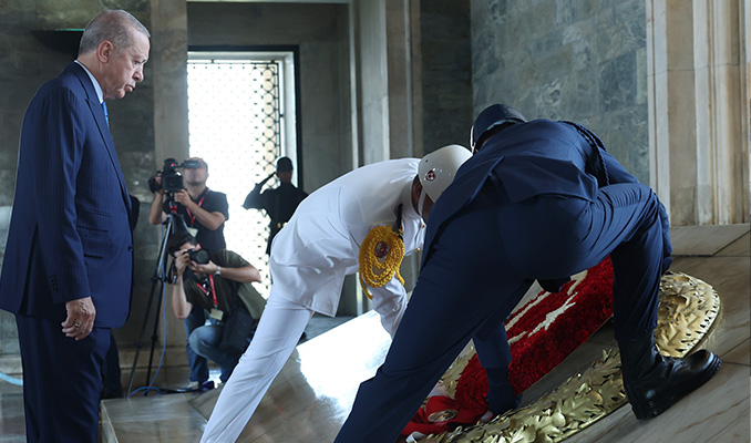 Cumhurbaşkanı Erdoğan ve YAŞ üyeleri, Cumhurbaşkanlığı Külliyesi'ndeki toplantı öncesi Anıtkabir'i ziyaret etti.