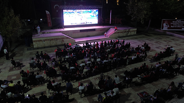 Kentte sporseverler, A Milli Basketbol Takımı'nın 2025 Avrupa Basketbol Şampiyonası finalinde Almanya ile oynadığı karşılaşmayı dev ekranda izledi.