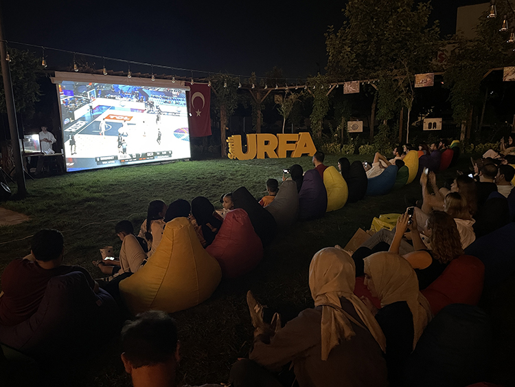Şanlıurfa'da, A Milli Basketbol Takımı'nın 2025 Avrupa Şampiyonası finalinde Almanya ile oynadığı karşılaşmayı, Kızılay Parkı'nda kurulan dev ekrandan izlemek isteyenler, erkenden alana geldi.