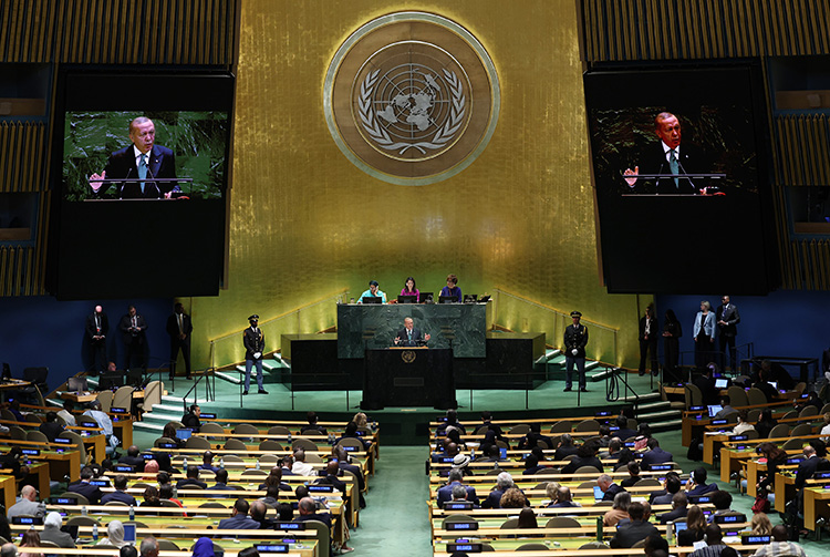 Cumhurbaşkanı Erdoğan, Birleşmiş Milletler (BM) Genel Kurul Salonu'nda BM'nin 80. Genel Kurulu görüşmelerinde katılımcılara hitap etti.
