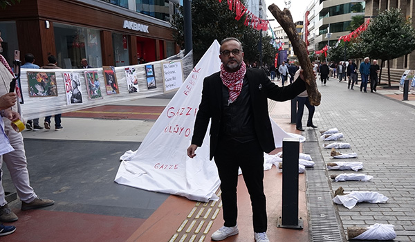 Artvin Çoruh Üniversitesi Görsel İletişim Tasarımı Bölümü Öğretim Üyesi Dr. Kemal Sağlam, Gazze'de yaşanan katliamlara dikkat çekmek amacıyla Trabzon’un Kahramanmaraş Caddesi’nde bir protesto gerçekleştirdi. Caddede bulunan ağaç ve aydınlatma direğinin arasına streç film gererek öğrencilerinin Gazze’de yaşananlarla ilgili yaptığı görsel çalışmaları sergileyen Sağlam, resimlerinde sivillerin ve çadırların bombalandığı mesajlarını verdi. Bir çadır kurarak temsili kefene sardığı odun parçalarını yere dizen Sağlam, "Odunlar uyanın; Gazze'de bebekler ölüyor, insanlık ölüyor" diyerek slogan attı.