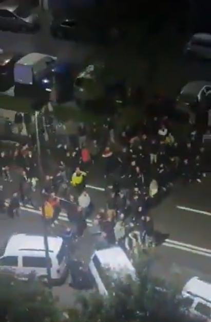 Sosyal medyaya yansıyan görüntülerde gözaltına alınanların polis eşliğinde araca bindirilme anları yer aldı. Bu arada öfkeli bir kalabalığın "Türkleri öldürün" diyerek ırkçı slogan attığı öne sürüldü.