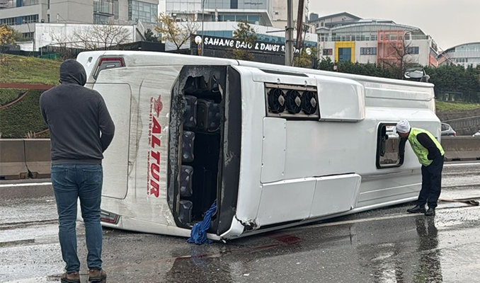 Maltepe'de havalimanı çalışanlarını taşıyan servis minibüsü devrildi.