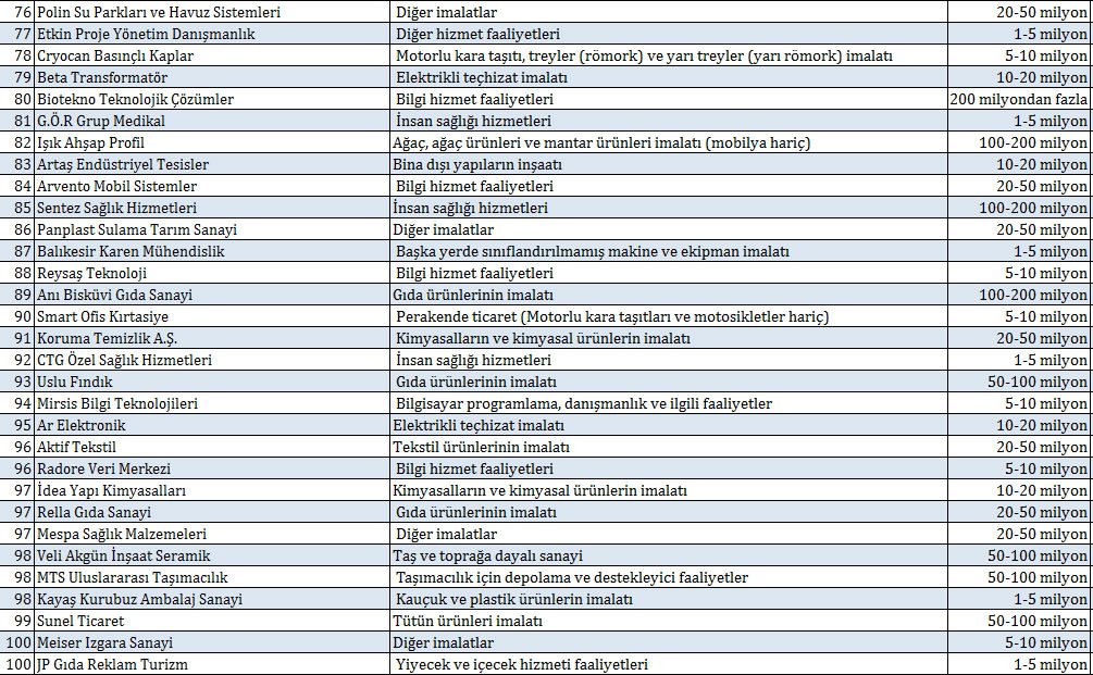 İŞTE TÜRKİYE 100 LİSTESİ