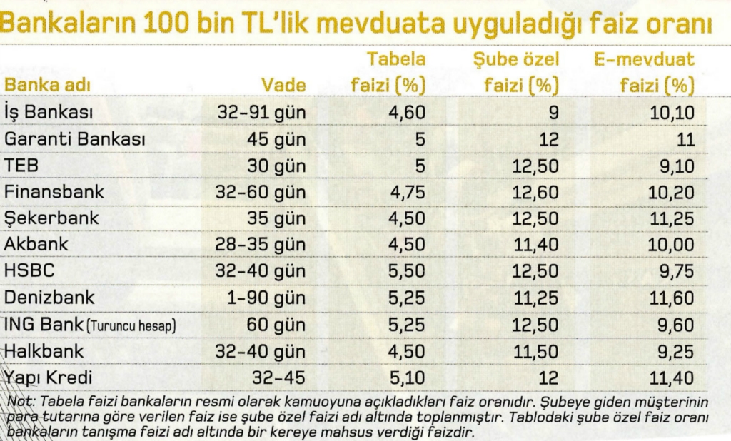 Yılın son günleri bankalar arasında mevduat kapma yarışı iyice kızıştı. Her yıl olduğu gibi bu yıl da bankalar yılsonu bilançolarında yüksek tutarda mevduat tutabilmek için deyim yerindeyse kesenin ağzını açtı. "Bilanço makyajı" olarak da ifade edilen bu durum, tasarruf sahiplerine yarıyor. Bugün 100 bin TL gibi bankacılık sistemi için küçük olarak adlandırılan mevduatlara bile bankalar yüzde 12.5'lar civarında faiz uyguluyor. Ancak edindiğimiz bilgiye göre para tutarı 10-15 milyon TL'ye ulaştığında faizler yüzde 13.30-13.50 bandına çıkıyor.