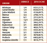 Tablodaki rakamlar eşi çalışmayan ve bir çocuğu 6 yaşından küçük, diğer çocuğu 6 yaşından büyük olan bir memur için hesaplanmış rakamlardır.