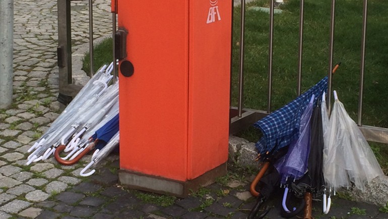 Yenibosna'daki binanın kapısı zincirlendi. Biber gazlı müdahaleye karşı kapının önünde şemsiye yığıldı.