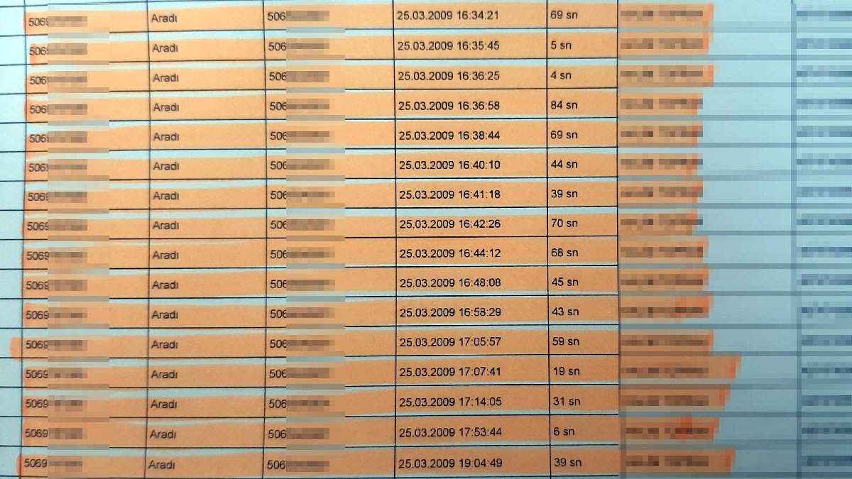 Bir günde 16 kez arayacaksınız ve 16 kez aramaya rağmen 14 dakikaya kadar görüşme yapılmış olmasına rağmen ki HTS kayıtlarında bu böyle gösteriyor. Ödemeli arama yaptığını hiç söylemedi, görüştüğünü hiç söylemedi, hala da inkar etmekte.