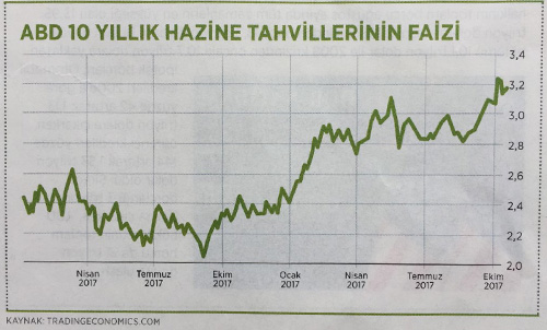 Fed bu yıl faizleri üç kez artırdı ve piyasalar aralık ayında bir gelecek yıl ise üç artış daha bekliyor. Faiz artırımları borsaları aşağı çekerken faiz oranlarını yükseltiyor. İki yıllık Hazine tahvillerinin faizi 2008’den bu yana en yüksek seviyeye çıkarken, ipotek, otomobil kredileri ve diğer borçlanmaları fiyatlandırmada kullanılan 10 yıllıkların faizi de yedi yılın en yükseğine ulaştı.