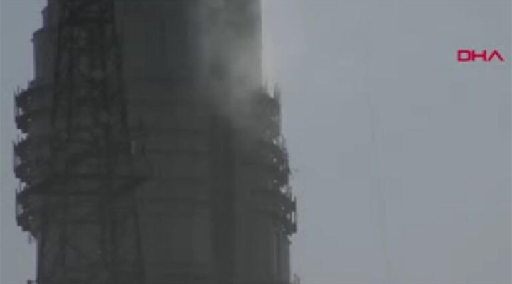 Çamlıca'da görüntü kirliliği oluşturan antenler ve kulelerinin tek bir noktada toplanması için yapımına başlanan Küçük Çamlıca TV-Radyo Kulesi inşaatında yangın çıktı.