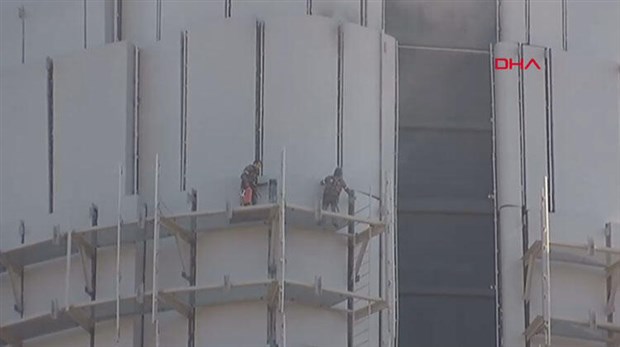 İtfaiyenin kuledeki incelemesi sürüyor.