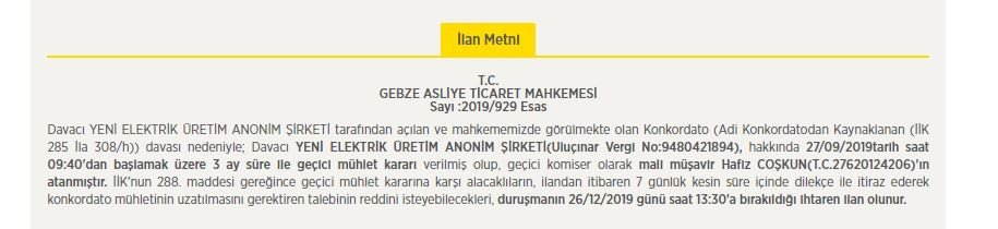Galatasaray eski başkanının şirketi konkordato ilan etti. Yeni Elektrik’in Gebze’de 850 megavatlık elektrik üretim santrali bulunuyor. Unit – Ansaldo ortaklığında Galatasaray Eski Başkanı Ünal Aysal’ın şirketi Unit’in payı ise yüzde 60.