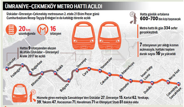 Cumhurbaşkanı Recep Tayyip Erdoğan tarafından 21 Ekim’de açılışı yapılan Üsküdar-Ümraniye Metro Hattı’nın ikinci etabı olan Ümraniye-Çekmeköy metro hattı hem İstanbul trafiğini azaltacak hem de ekonomiye olumlu katkı yapacak.