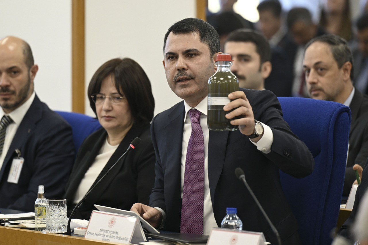 Öte yandan Kurum'un, sunumu sırasında İzmir Körfezi'ndeki kirliliğe dikkati çekmek için yanında getirdiği deniz suyu numunesini milletvekillerine göstermesi üzerine CHP'li milletvekilleri Kurum'a sözlü sataşmada bulundu.