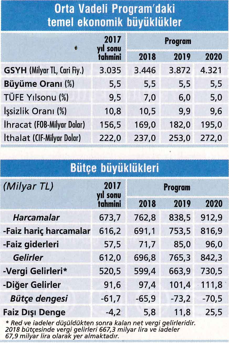 Bu açıklamalar kapsamında Orta Vadeli Program’da yer alan Türkiye’nin temel ekonomik büyüklüklerinden bazıları yandaki tabloda özetleniyor.