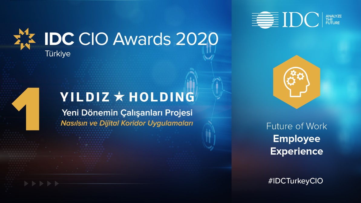 11. IDC Türkiye CIO Zirvesi kapsamında düzenlenen ve ülkemizin önde gelen kurumlarına ait bilişim teknolojileri projelerinin değerlendirmeye alındığı IDC CIO Ödülleri 2020’de, Yıldız Holding’in “Dijital Koridor” ve “Nasılsın” isimli dijital iletişim uygulamaları, “Future of Work-Employee Experience” kategorisinde birincilik, “Future of Work -Reskilling” kategorisinde ise üçüncülük ödülünü kazandı.