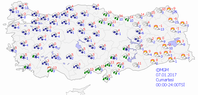 Hava sıcaklığının cumartesi günü en düşük sıfırın altında 7, en yüksek sıfırın altında 3, pazar günü ise gece sıfırın altında 10, gündüz de sıfırın altında 4 derece olacağı tahmin ediliyor.