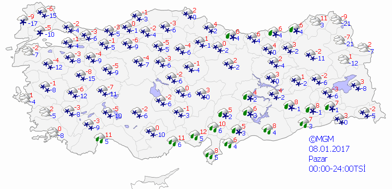 8 Ocak pazar günü ise balkanlar üzerinden gelen kar dalgası doğu anadolu bölgesini de etki alanına katacak. Pazar günü yurdun doğusundan batısına hemen her yerinde kar yağışı etkili olacak.