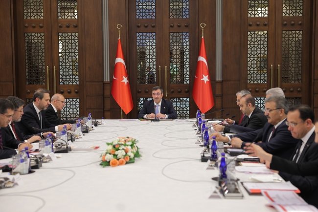 Ekonomi Koordinasyon Toplantısı Beştepe'de toplandı. Toplantıya Cumhurbaşkanı Yardımcısı Cevdet Yılmaz başkanlık yaparken Hazine ve Maliye Bakanı Mehmet Şimşek, Çalışma ve Sosyal Güvenlik Bakanı Vedat Işıkhan, Enerji ve Tabii Kaynaklar Bakanı Alparslan Bayraktar, Sanayi ve Teknoloji Bakanı Mehmet Fatih Kacır, Tarım ve Orman Bakanı İbrahim Yumaklı, Ticaret Bakanı Ömer Bolat ile Strateji ve Bütçe Başkanı İbrahim Şenel katıldı. Merkez Bankası Başkanı Hafize Gaye Erkan katıldı.