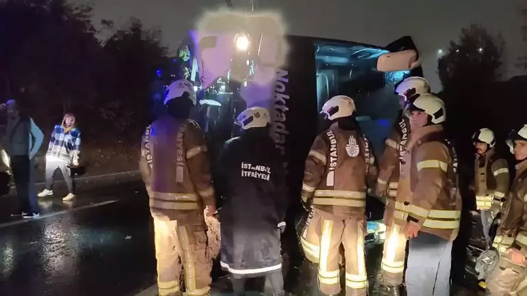 Bayrampaşa'da iddiaya göre şoförünün direksiyon hakimiyetini kaybettiği yolcu otobüsü devrildi.