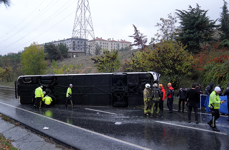İzmir- İstanbul seferini yapan, içinde 33 yolcunun bulunduğu 33 AVD 156 plakalı şehirlerarası otobüs şoförünün direksiyon hakimiyetini kaybetmesi sonucu devrildi.