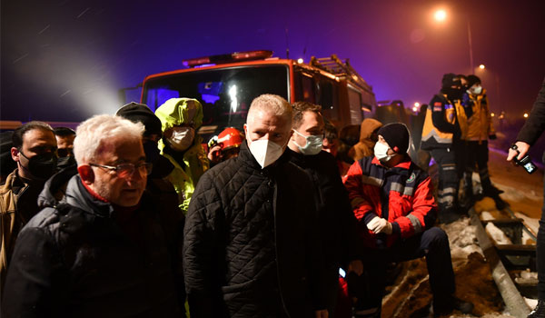"28 vatandaşımızın tamamı çıkarıldı, hastanelere sevk edildi. Şu an itibariyle ölüm yok. Belediye başkanımız, kaymakamımız, bütün görevli arkadaşlarımız burada, canla başla kurtarma çalışmalarında gayret gösteriyor. Yaralılara acil şifalar diliyoruz, firma sahiplerine ve yetkililere de geçmiş olsun diyoruz. Savcılık ve kolluk kuvvetleri boyutuyla kazanın oluş şekli takip ediliyor. Şu an bir tırla otobüsün karıştığı ama ayrıntısını bilmiyoruz."