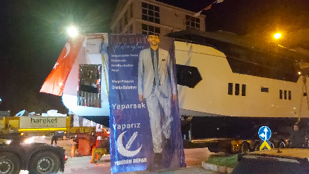 Yerel seçimlerde Döşemealtı ilçesinde Yeniden Refah Partisi’nden belediye başkan adayı olan iş insanı Mesut Hekimoğlu’nun dün ilçede yaptığı konvoy dikkat çekti. Hekimoğlu, organize sanayi bölgesinde faaliyet gösteren fabrikasında Dubaili bir iş insanı için 3 yılda yapımı tamamlanan 25 metre uzunluğundaki yatı, denize indirmek için fabrikadan çıkardı.