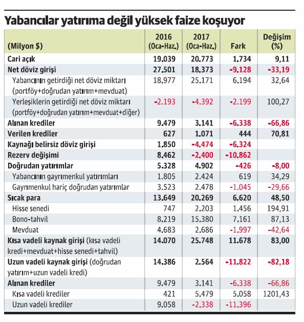 ■ Yani yabancı yatırımcıların gözünde Türkiye diğer alanlarda cazibe kaybederken, cazibesinin arttığı tek alan yüksek faiz olmuş.