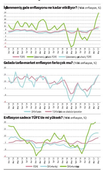 Asıl önemlisi işlenmemiş gıda dışında kalan kalemlerin ortalama enflasyonu ile genel enflasyon hep birbirine yakın ve aynı eğilimler içinde seyrediyor. İşlenmemiş gıdadaki oynaklık, toplam enflasyonu belirli ölçüde etkilemekle birlikte temel düzeyini ve yönünü pek de değiştirmiyor.