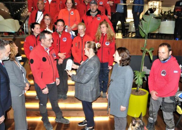 Vali Yardımcısı Gevrek, gösterdikleri çabadan dolayı Yunan Kurtarma Ekibine teşekkür ederek, ekip şefi Yannis Papastathis'e plaket takdim etti. Gevrek'in bu sırada kurtarma ekibindeki kadın üyelere sarılması sırasında duygusal anlar yaşandı. Grup Türk ve Yunan bayrakları açarak toplu fotoğraf çektirdi.