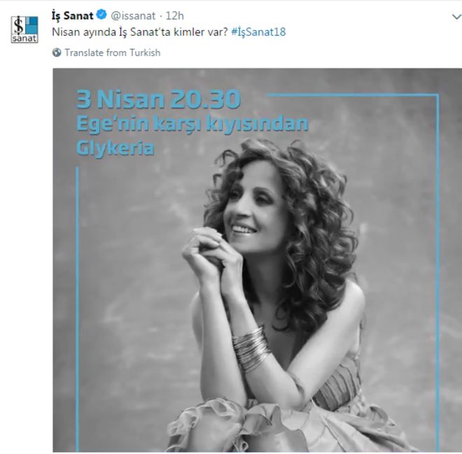 İş Sanat'ın kültür merkezinde sahne alacak olan Glykeria daha önce de Türkiye'ye konser için gelmişti.
