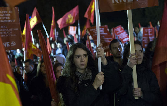 Yunanistan Komünist Partisi (KKE) gençlik örgütünün çağrısıyla bir araya gelen yüzlerce kişi, Atina'daki ABD Büyükelçiliği önünde toplandı.