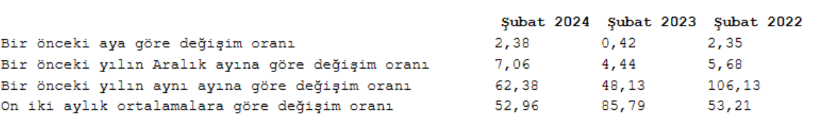 YD-ÜFE değişim oranları(%), Şubat 2024