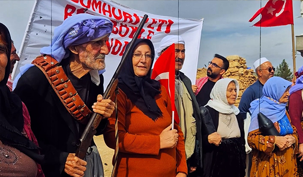 Şanlıurfa'nın kırsal Çiftekemer Mahallesi'nde kadın, erkek, çocuk ve yaşlıların katıldığı kortej yürüyüşünde ellerinde Türk bayrakları taşıyan mahalleli, yöresel kıyafetler giyip, 'Cumhuriyeti biz böyle kazandık' yazılı pankart taşıdı.