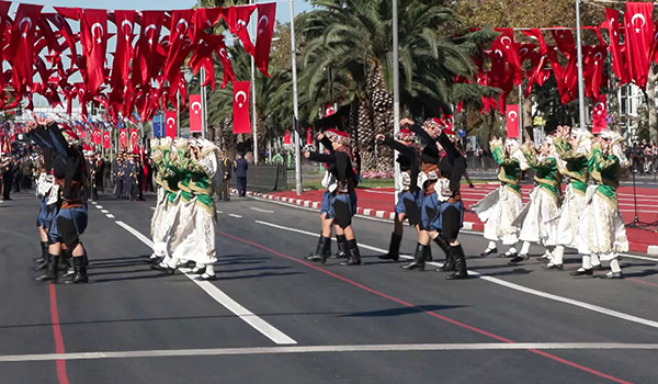 Meydanda daha sonra İl Milli Eğitim Müdürlüğü halk oyunları gösterisi ile İzmir Yüksek Teknoloji Enstitüsü halk dansları gösterisi sunuldu. Geçit töreninin ardından meydandaki tören sona erdi.