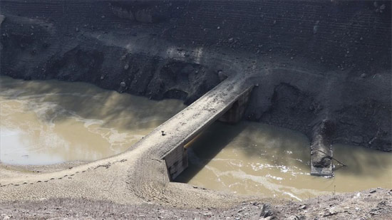 Geçen yıl şubatın son döneminde maksimum seviyeye yaklaşan baraj gölünde, şimdilerde ise havzayı besleyen bir kolda köprü ve su kemerleri kalıntısı görünüyor.