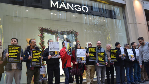 Etiket eylemiyle 300 bin imza toplayan işçiler dün Zara’nın Nişantaşı mağazası önünde tek sıra halinde durarak ellerinde tuttukları, “Zara, Next ve Mango’dan alacağımız ürünleri ben yaptım ve paramı alamadım” etiketi ile bir kez daha alacaklarını hatırlatarak Zara, Next ve Mango’ya çağrıda bulundular. İşçiler, paralarını alana kadar eylemlerini dünya çapında sürdüreceklerini açıkladılar.(Ceren Boztepe/Hürriyet)