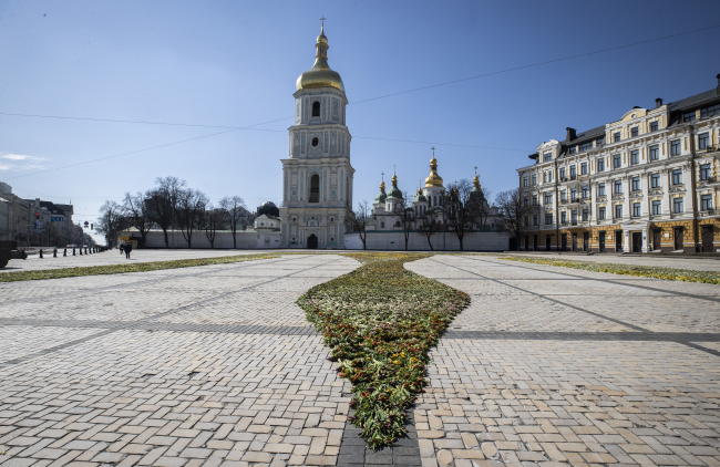 Ukrayna'nın Odesa kentinde yaklaşık 150 kadar genç silah ve ilk yardım eğitimleri alırken, başkent Kiev'de halk, bir buçuk milyon laleden Ukrayna arması oluşturdu.