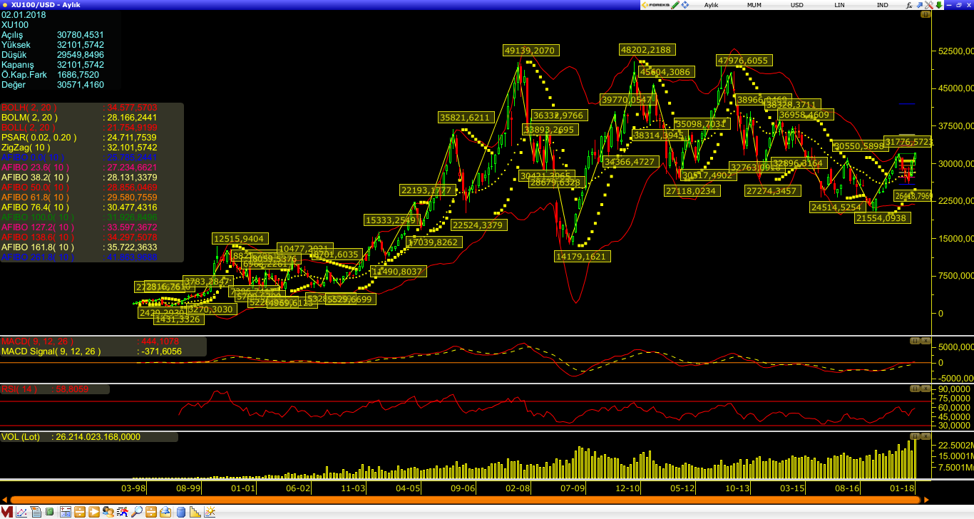 Dolar bazında 01/10/2007 tarihinde 50204, 01/10/2010 tarihinde 50,316, 02/01/2013 günü de 49,381 USD seviyelerini test etmiş bir borsamız olmuş. Ancak son işlemler 26/01/2018 günü 31141 seviyelerinden gerçekleşmiş. Dolar bazında bu gelişmeler olurken, Türk Şirketleri aynı yerde saymamış ve Dünya’nın en hızlı büyüyen ekonomilerinden birinin içerisinde hızla büyümeye devam etmişler. Kısacası Borsa için primli diyebilmemiz için şu anki değerinin iki katında olması gerekiyor. Şu an bu söylediğim sizlere hayal gibi gelebilir ama gerçekleşme ihtimali çok yüksek olan bir seviye. Dolar bazında bu seviyelerin yakalanması için iki seçeneğimiz var.