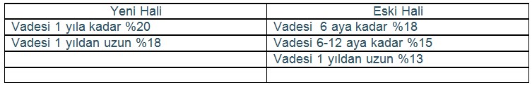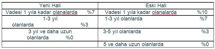 Cumhurbaşkanı kararı ile ayrıca döviz tevdiat hesaplarında vergi stopaj oranları aşağıdaki gibi arttırılmıştır. Yeni vergi oranları bugünden itibaren açılacak ve yenilenecek hesaplara uygulanacaktır.