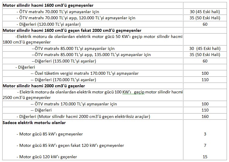 Aşağıdaki tabloda güncel (31.10.2018-31.12.2018) ÖTV oranları yer almaktadır.