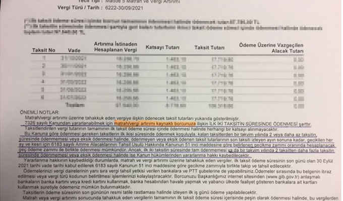 Vergi dairelerince matrah artırımı yapan mükelleflere verilen ödeme tablosunda normal borç yapılandırması ödemesi tablosu açıklaması ile matrah artırımı borç ödemesi tablosu açıklamaları karıştırılmıştır.